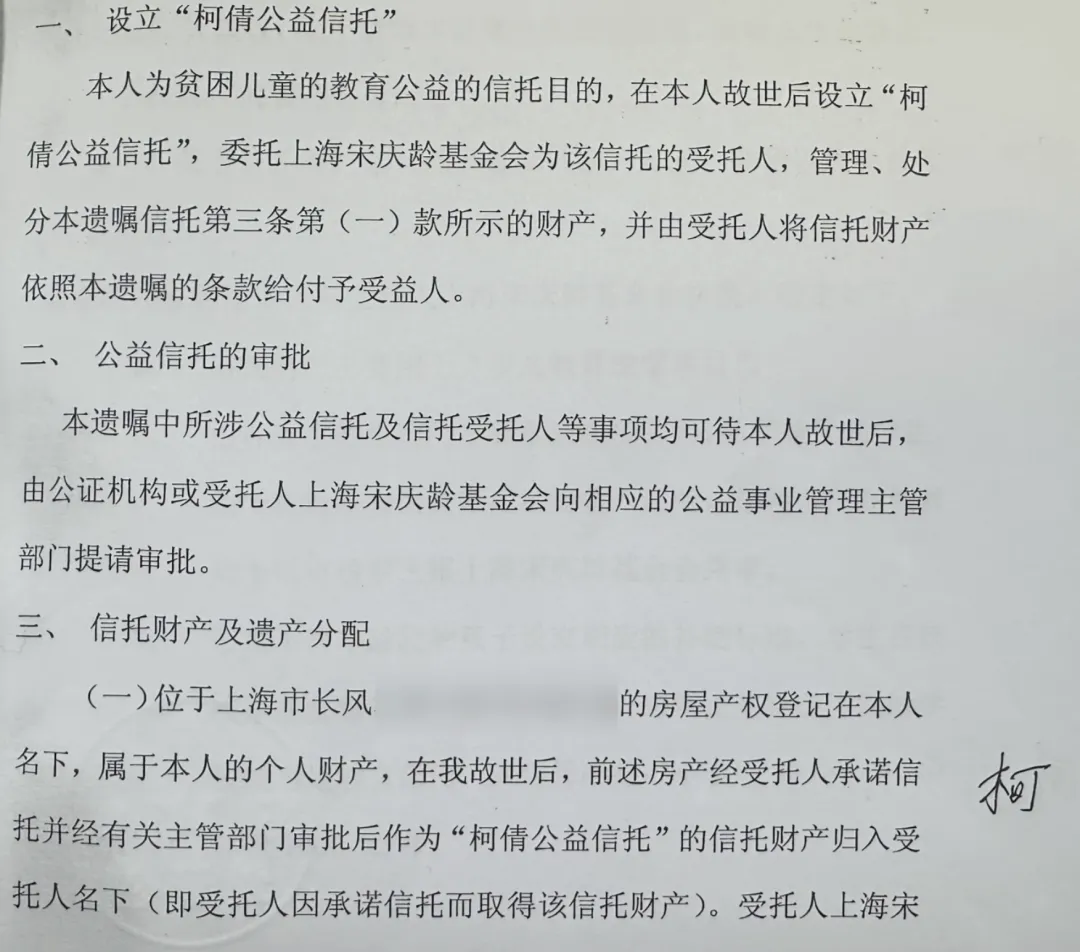 “柯奶奶一生感恩党和国家,她要把一切留给社会,留给孩子们。”