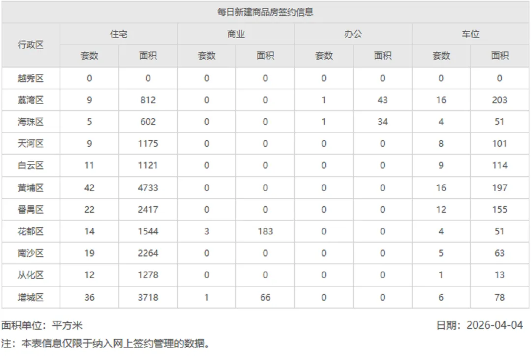 2026年4月4日二手房网签数据