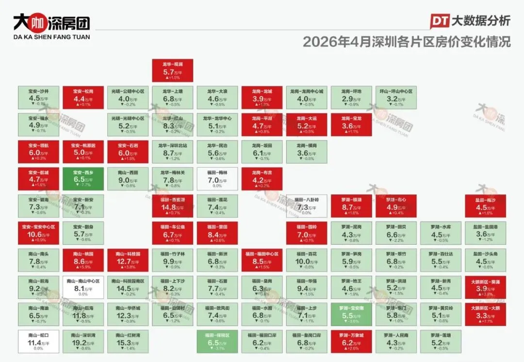 刚需买家:可关注龙岗、坪山、宝安西部等价格稳定或回调明显的区域,性价比突出;