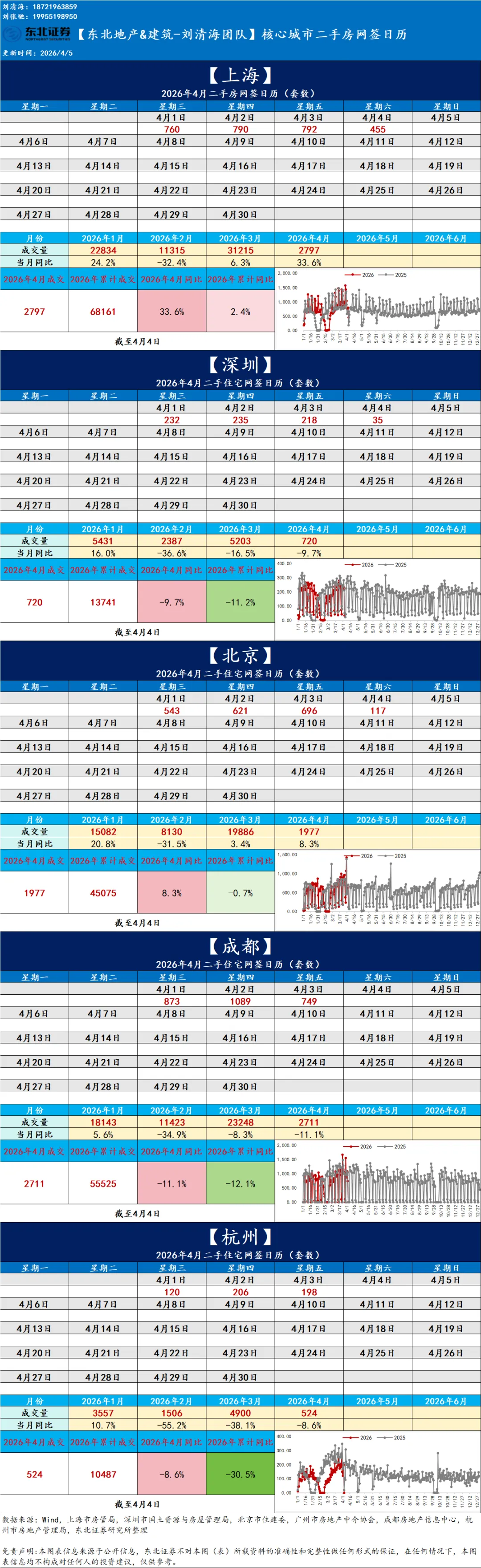 >【网签日历】核心城市二手房网签日历(20260404)丨东北地产建筑刘清海团队