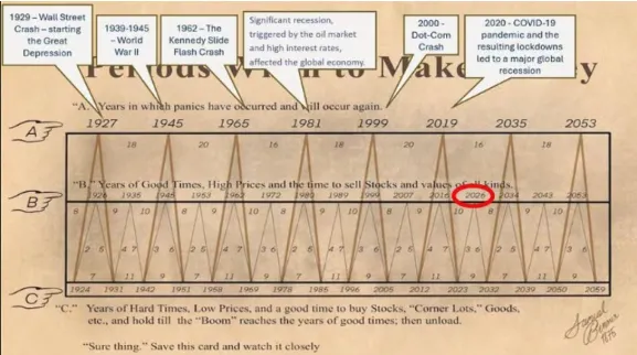 这一观点并非孤立存在,它与本纳周期(Benner Cycle)等多个长期经济模型高度吻合,所有理论均指向同一个高风险窗口。