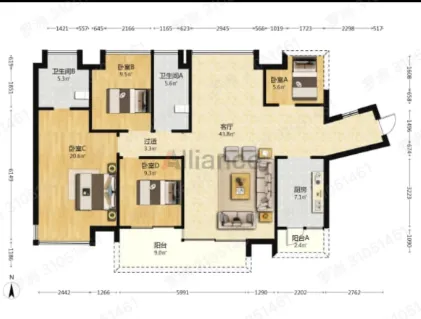 【居室】:4房𝟐厅2卫