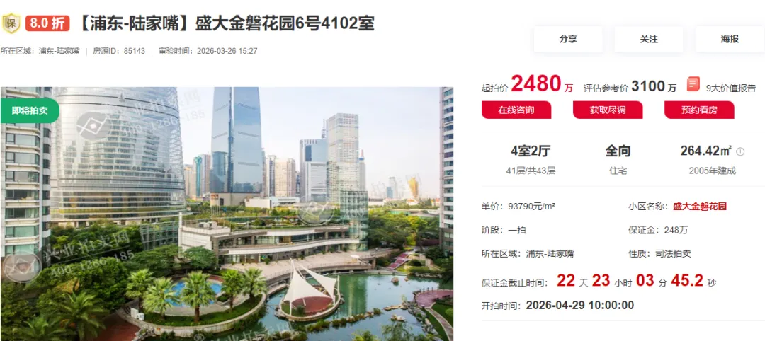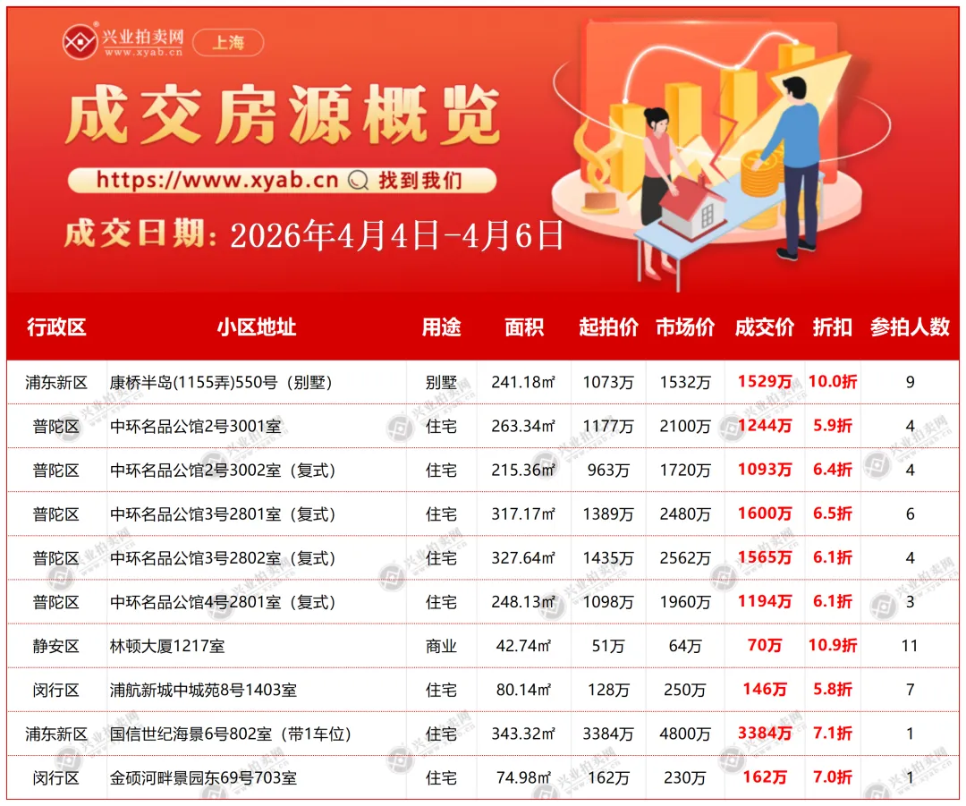 兴业拍卖|4月7日上海拍卖房产简报:清明假期成交10套,盛大金磐花园8折上拍!