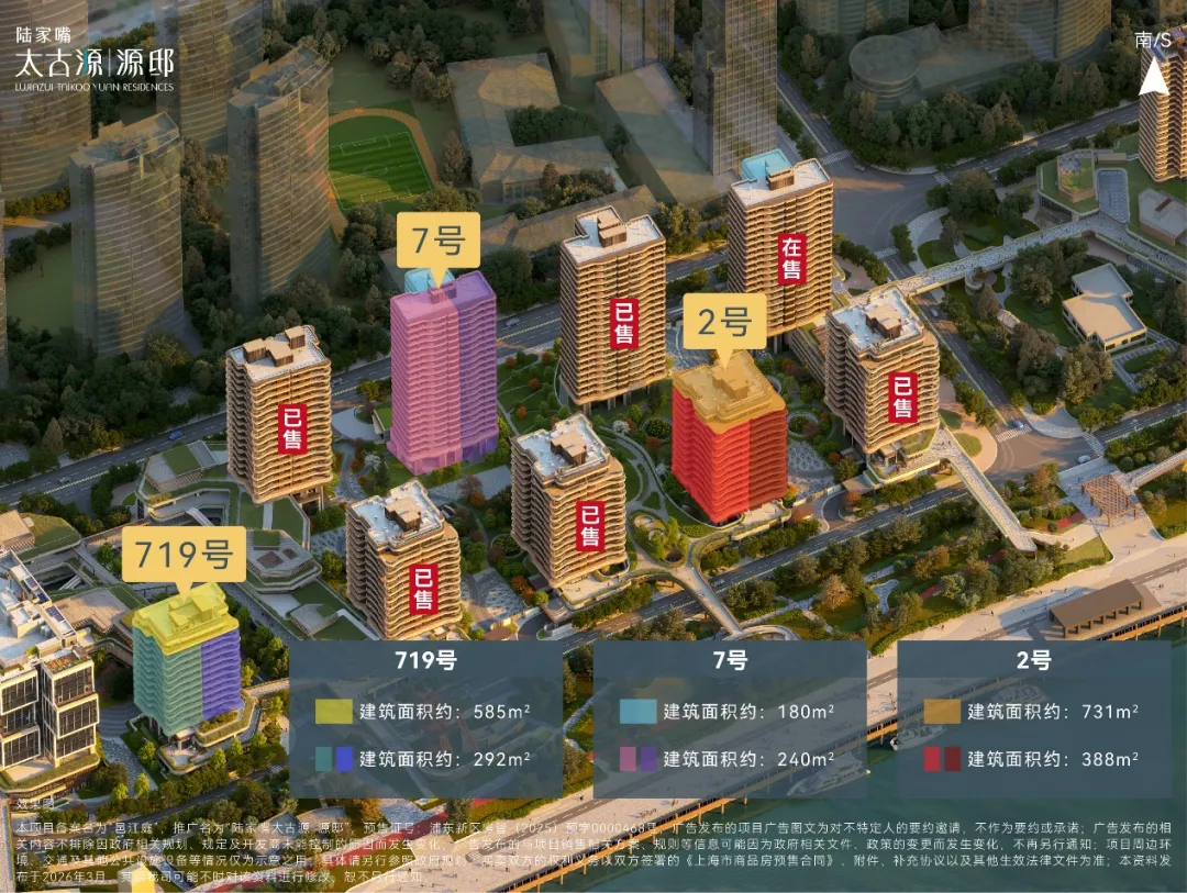 • 浦东陆家嘴滨江【陆家嘴太古源.源邸】-4.7五期认筹,推56套高层大平层180/240/292/388/585/731,备案均价181800元/㎡。计划4.17开盘。该项目26.1.6完成四期60套开盘,截至发稿网签率73%