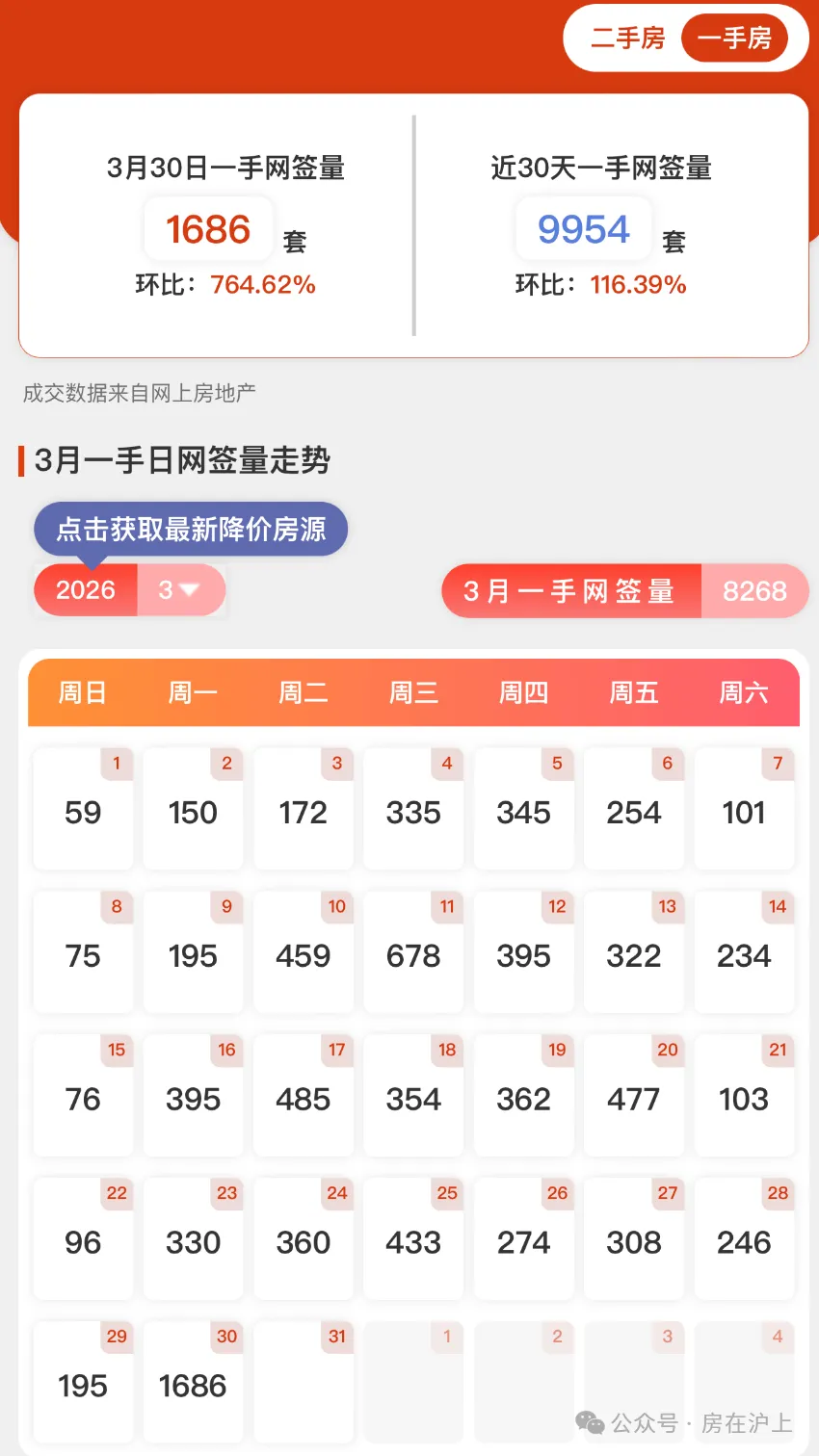 对比去年,2025年上海新房的最高单日成交纪录为1699套,发生在年底,而今年3月的数据已将其大幅超越。