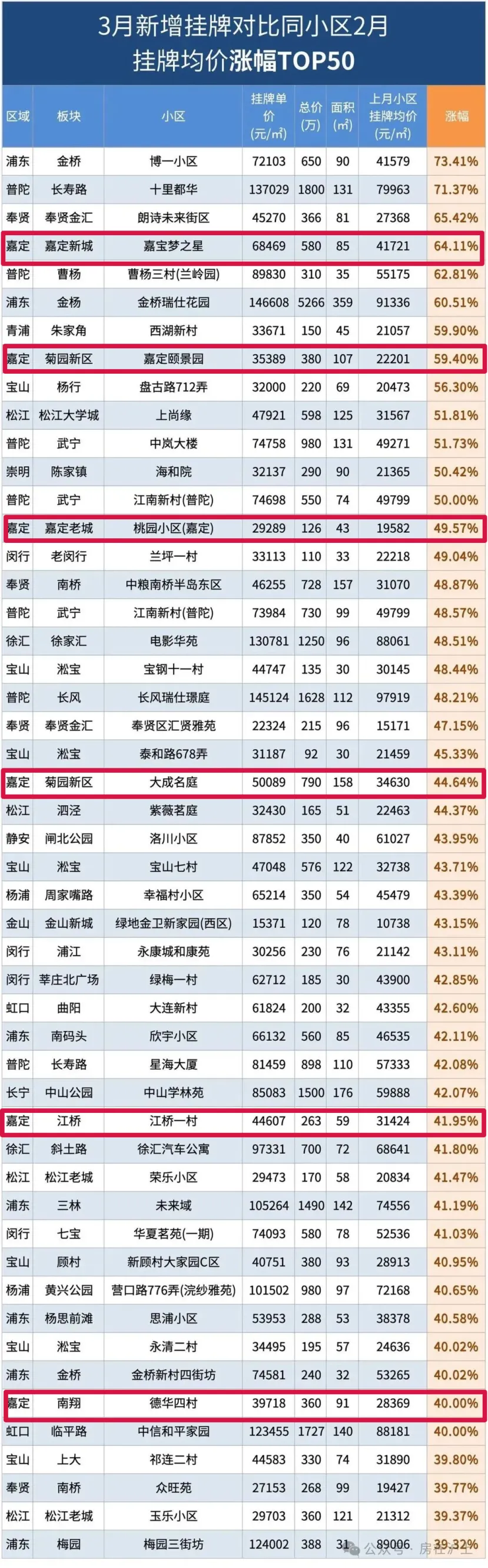 一份网络流传的“3月新增挂牌价涨幅TOP50”榜单更为直观地揭示了这一趋势。榜单显示,多个小区3月新增房源的挂牌单价,较其上月小区挂牌均价出现了40%至70%以上的大幅上涨。