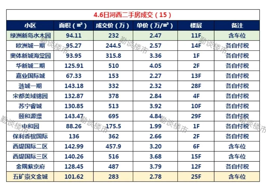 关注勤谈楼市,了解河西成交。