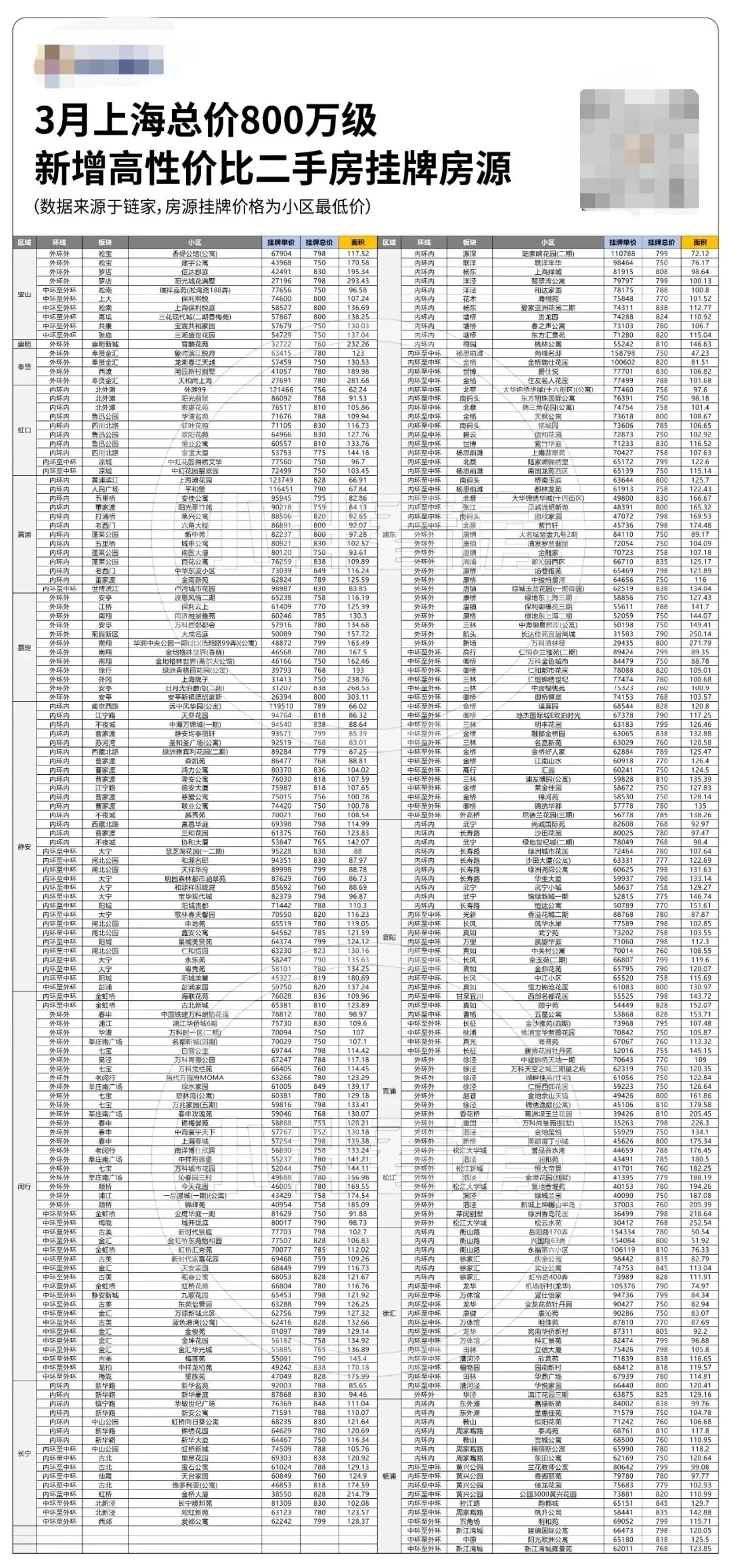 楼市小阳春还在继续,后台询问各个总价段买房的朋友明显多了起来!目前市场正处在一个向好的拐点,无论是刚需上车、还是改善置换,大家都要珍惜当前的置业窗口!之前已经帮大家整理300万以内、500万级的二手房置业攻略:开始之前,先跟大家分享一下3月以来链家总价800万级新增挂牌房源情况:截止到3月31日,上海二手房新增挂牌15555套,其中总价800万级的房源588套,占比约3.78%,略低于存量挂牌占比!