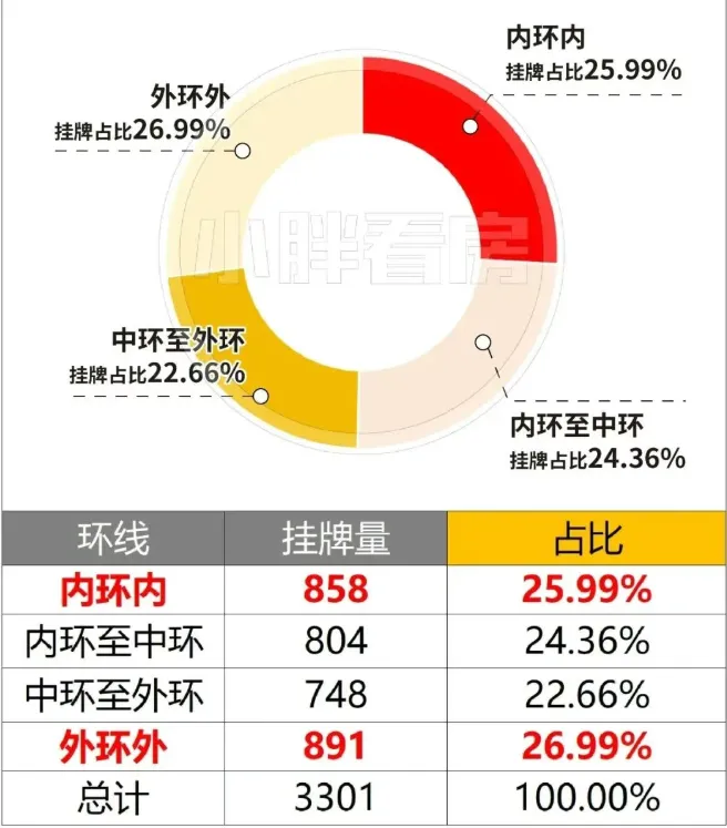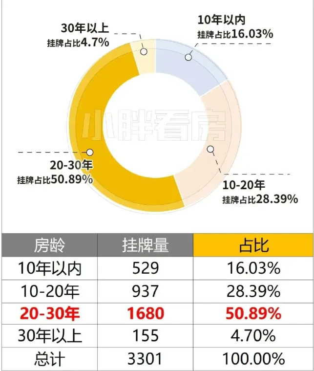 这说明新入场的房东心态差距非常大,大多数人是比较务实,试图在快速成交和卖价更高找到平衡,也有相当大比例的房东选择直接用最低价抢占先机!那对于预算800万级正准备上车的朋友来讲,这些用最低价抢占先机的房源值得重点关注,捡笋的机会不少!整理新增挂牌中挂牌价为小区最低价的房源明细,希望对大家买房有所帮助!备注:1、以下二手挂牌数据、带看数据来自链家网;2、以下数据及结论仅供参考,不作为资产配置依据。据最新挂牌数据显示,截止3月31日,链家网合计有81461套房源挂牌其中挂牌总价800万级的房源有3301套,占总池子比例约4.05%我们把这3301套房源按环线划分,可以看到不同环线之间的占比比较平均,中外环间占比相对较少,占比为22.66%不难发现,当下如果手握800万级的预算,可选房源的主要类型是· 20-30年房龄占据半壁江山,10-20年占比近三成;