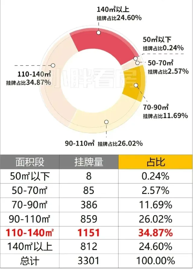 · 110-140㎡占比最高,约34.87%,总体来讲偏向中大户型;