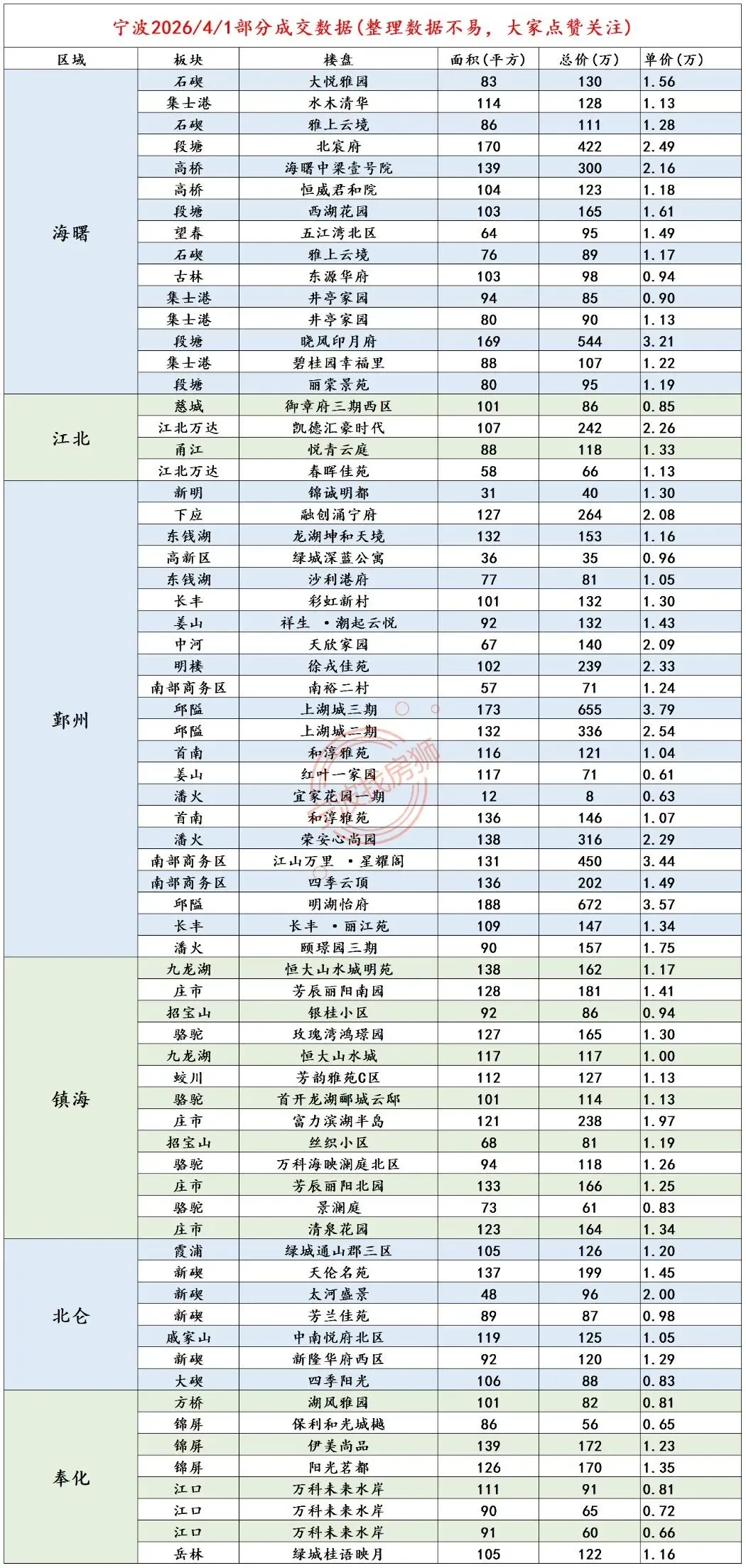 宁波.3月30号二手房成交数据