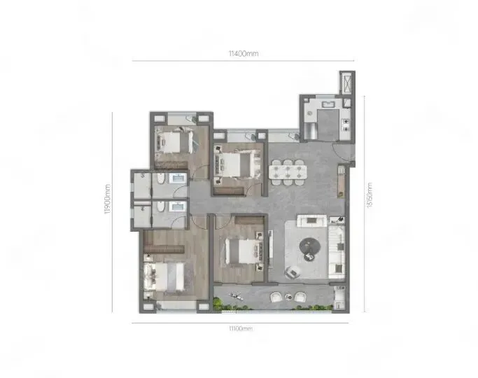 ◦ 最热:107–115㎡ 三房(刚需刚改)