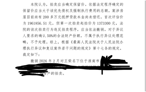 撤销2026年2月对案涉房产的拍卖。