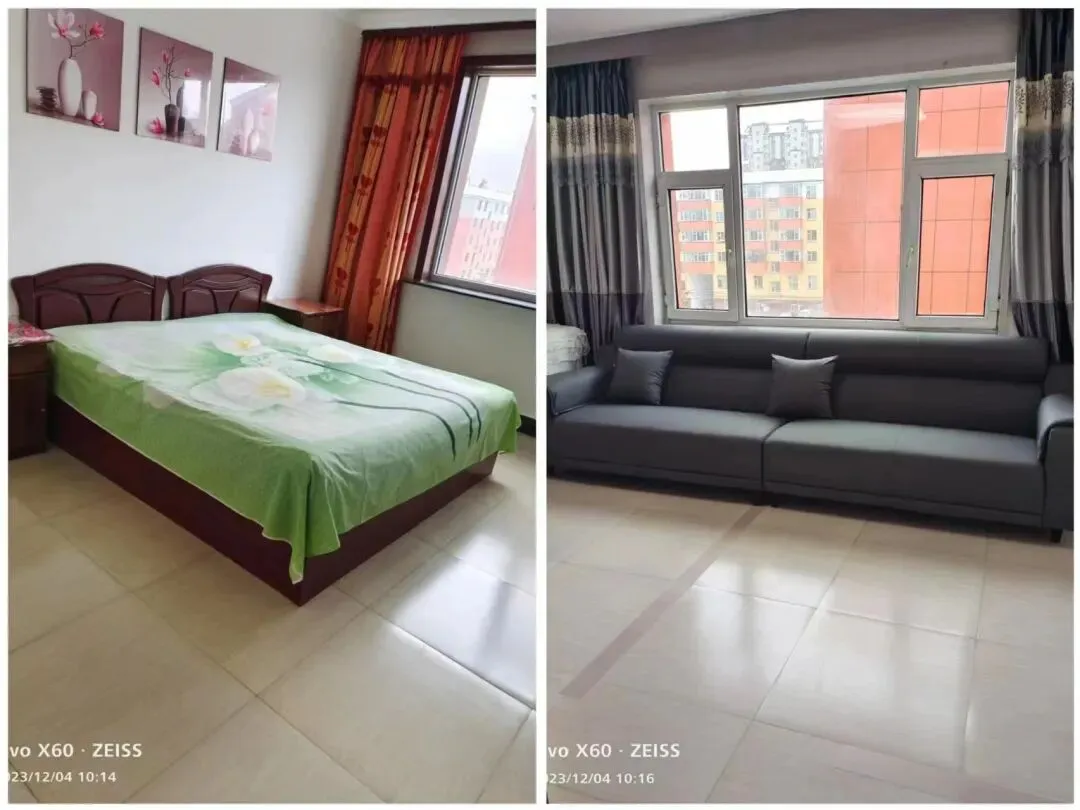 松江河林业局老一中附近94栋,楼房出租出售面积60平两室一厅,精装修三楼家居齐全拎包入住,地理位置佳电话13596714086
