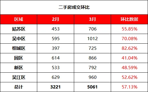 数据统计,苏州二手房方面,3月份成交了5061套,环比涨幅约57.13%,苏州二手房方面成交不错。可见一大波新政刺激,确实率先对二手房市场起到了拉动的效应,回暖信号清晰释放。