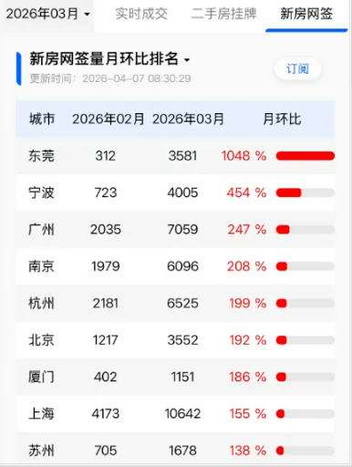 据统计,3月苏州新房网签环比涨约138%,涨幅位居全国第九!
