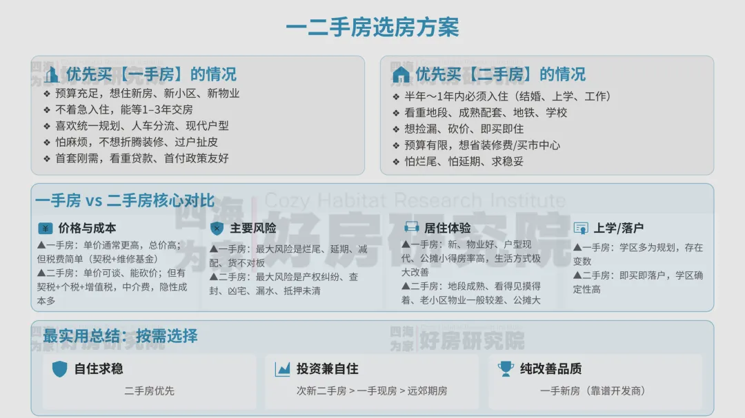 这里,我们(公众号:四海为家)也只做了关于一二手房价值的深度对比分析,如果在纠结,可以对比来看。