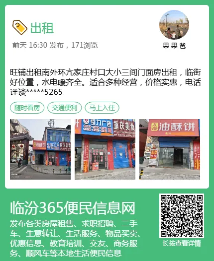 临汾365房产网 ▍南外环三间门面出租、东城求租办公用、兰亭名苑房屋出售...