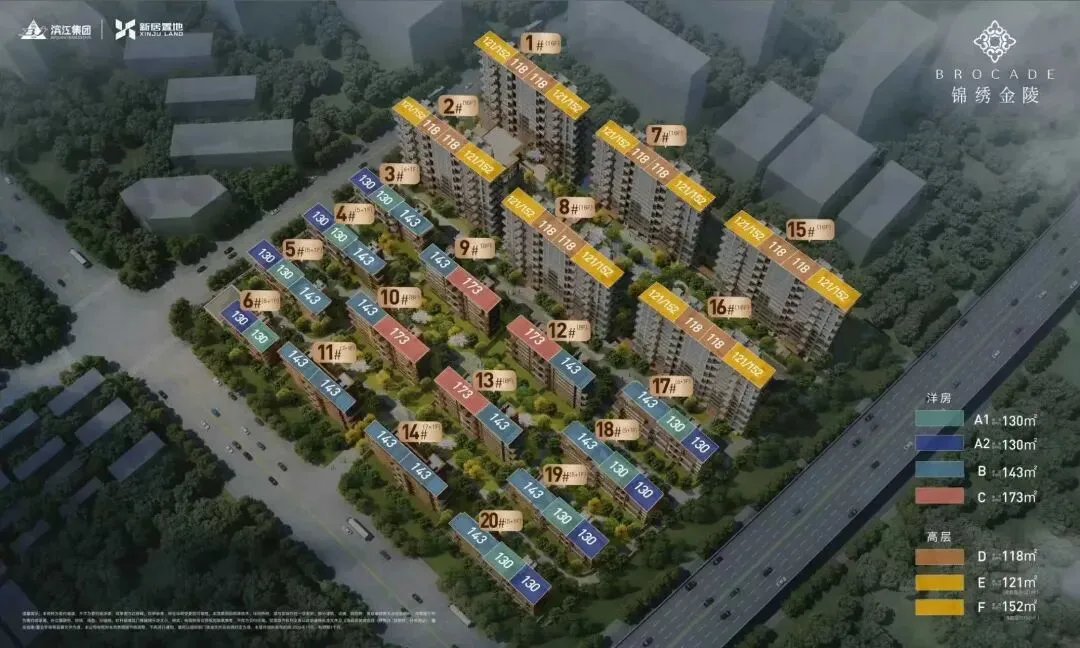 锦绣金陵项目由滨江集团和新居置地联合打造,户型面积段为115-173㎡,打造约70米宽大门、干挂铝板+陶板点缀立面、超5000㎡会所体系.......实景公开后好评如潮。