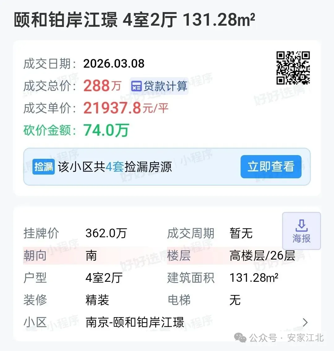 聚焦到单一小区,如位于江北核心区青奥板块的颐和铂岸江璟成交了一套建面约131㎡房源,成交总价为288万,成交单价为21937.8元/㎡。该套房源成交单价创下了小区纪录。