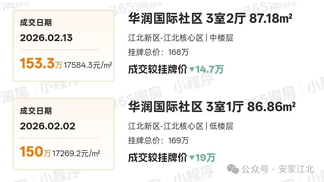 华润国际社区去年11月时成交价格多在1.3-1.4万/㎡,2月小区两套房源成交价突破1.7万/㎡,最高达1.75万/㎡。