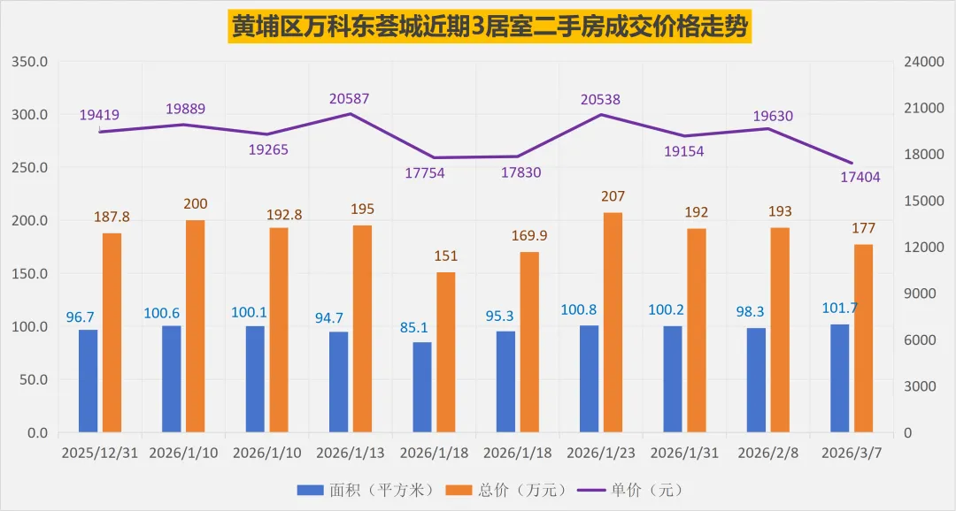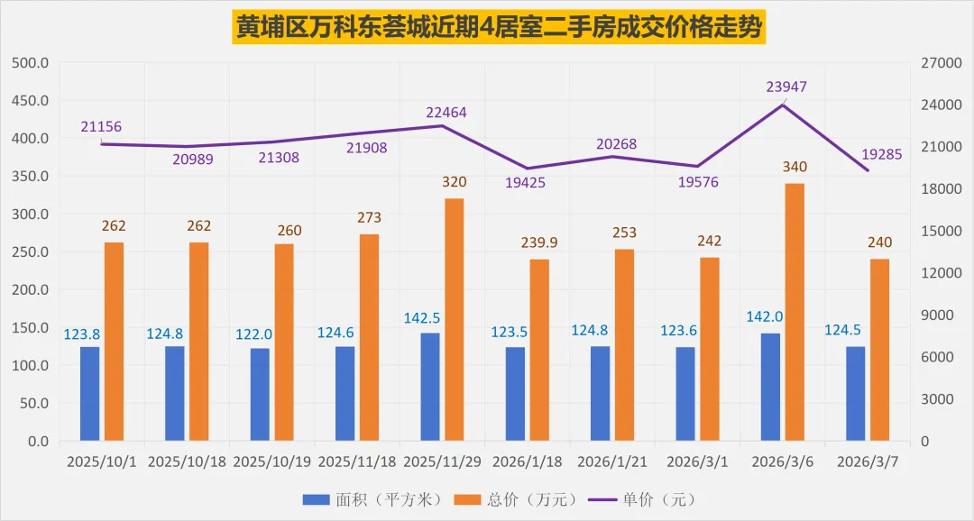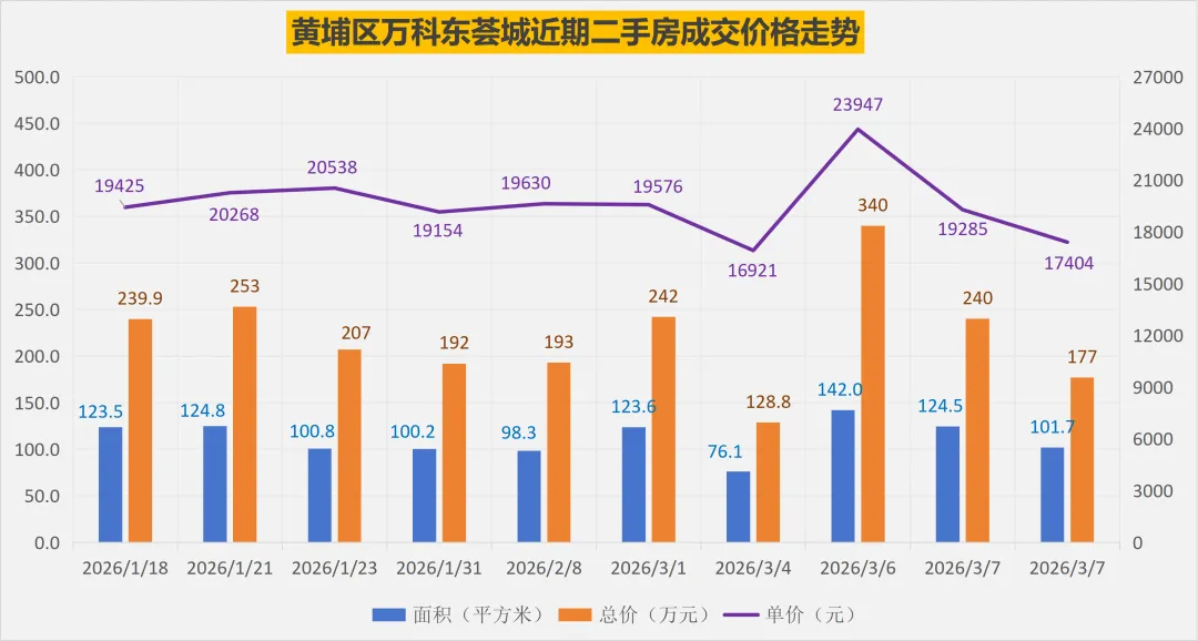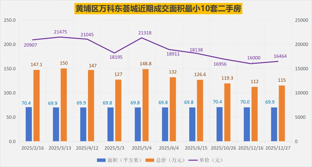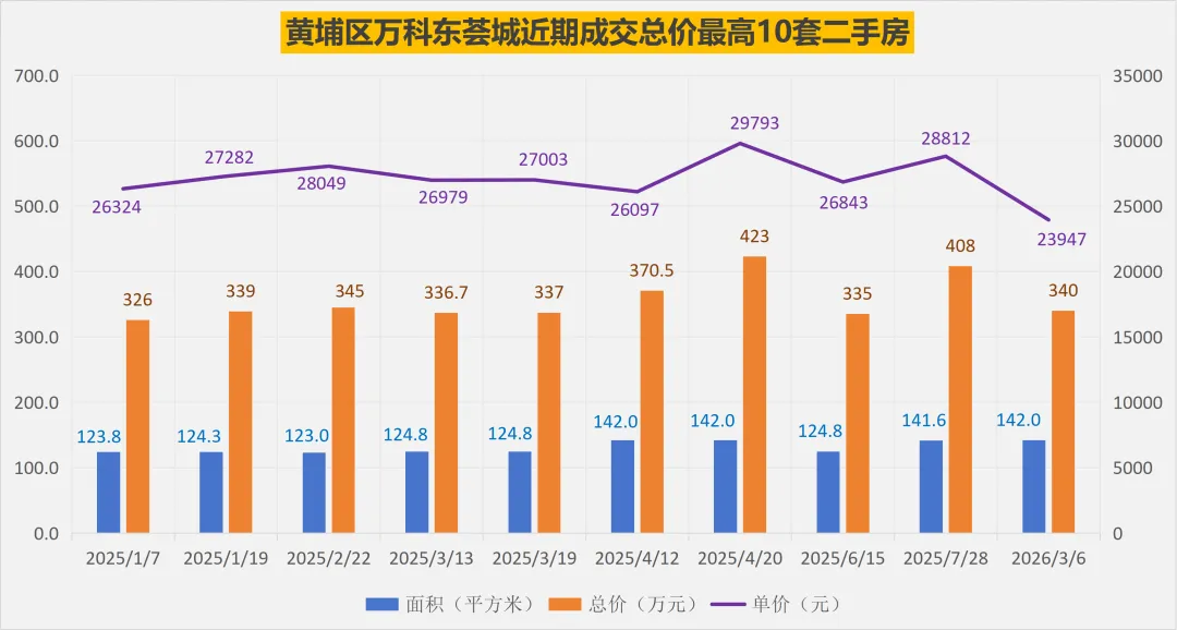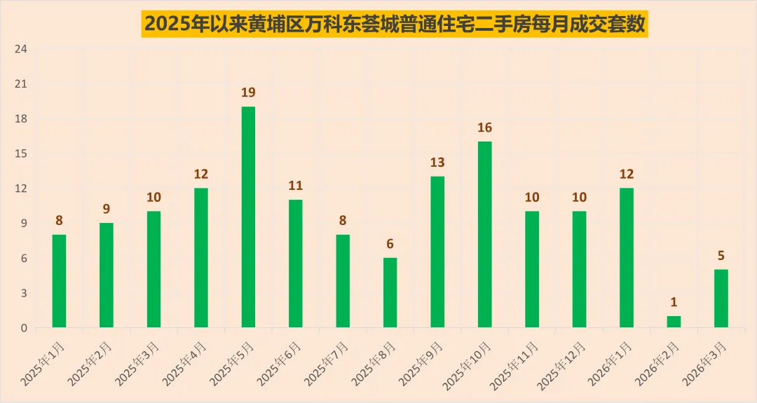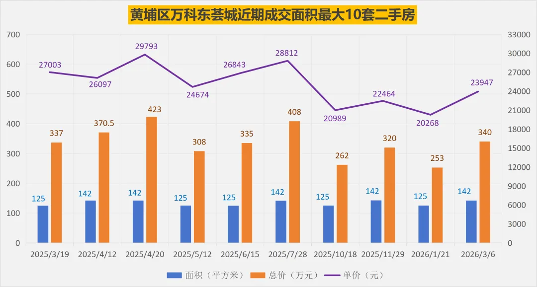2025年以来,黄埔区万科东荟城总共成交了150套普通住宅二手房,其中2025年132套(对比数据:2024年127套),2026年以来成交了18套。