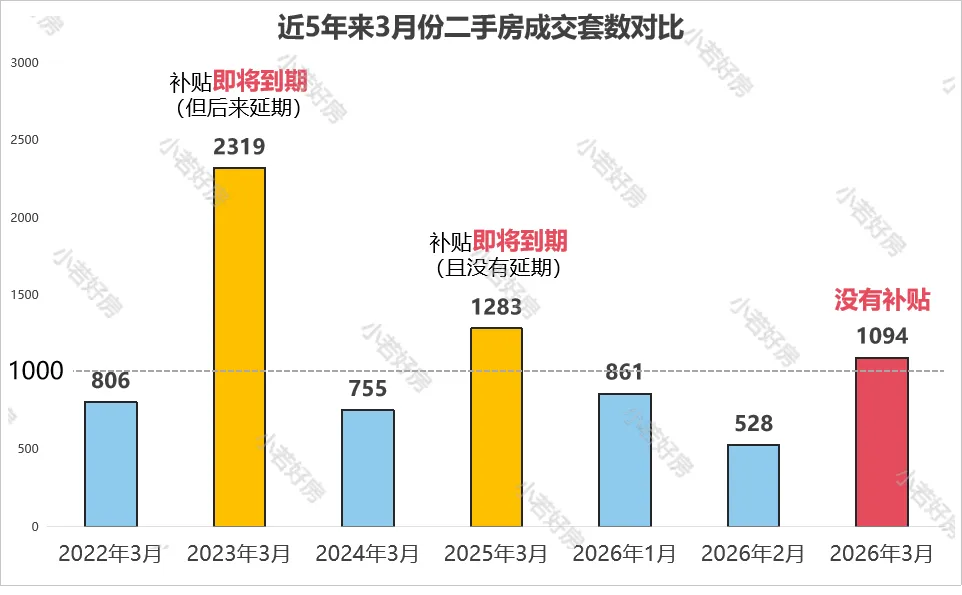 整个市区一共成交1094套,相比2月份暴涨107%!