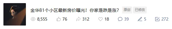 之前我们统计过金华81个小区的房价变化,你猜怎么着?没有一个上涨的