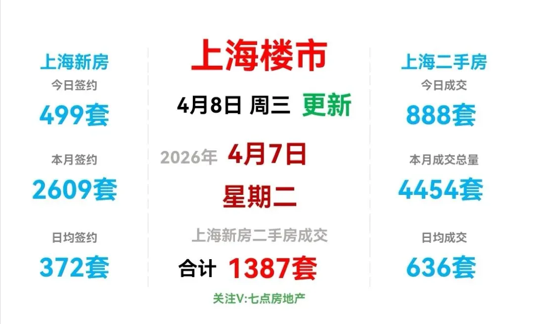 昨日(4月7日,周二),上海新房和上海二手房成交量合计1387套。