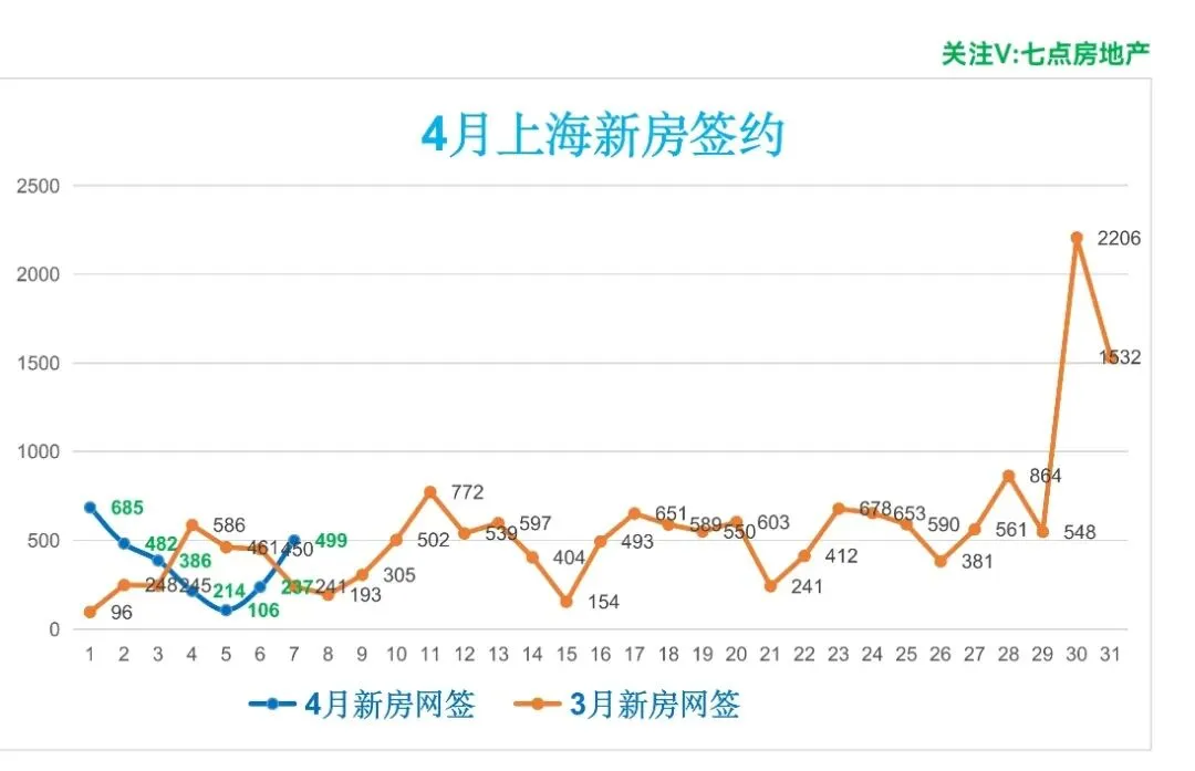 🏠昨日(4月7日,周二),上海新房签约499套,较前一日增加262套(增幅110.55%),日签约面积4.24万m²,套均面积84.97m²。
