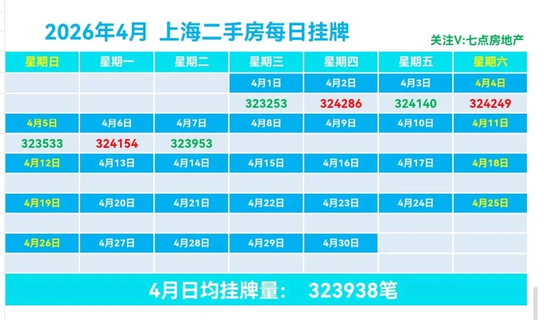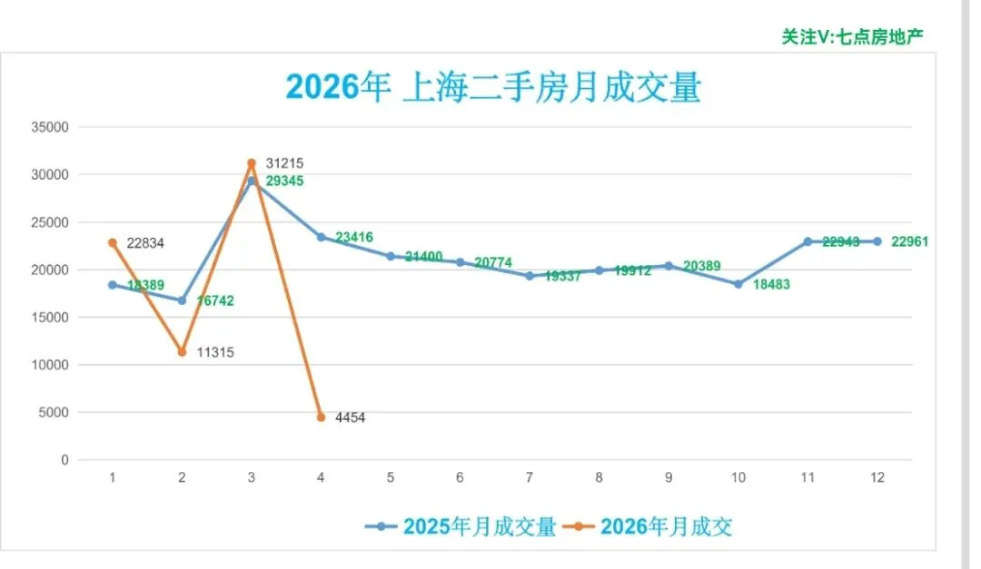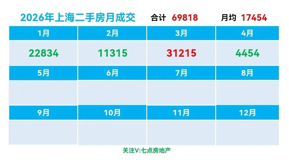 ♻️截止2026年4月7日,2026年上海二手房成交量合计69818套,月均21174套。