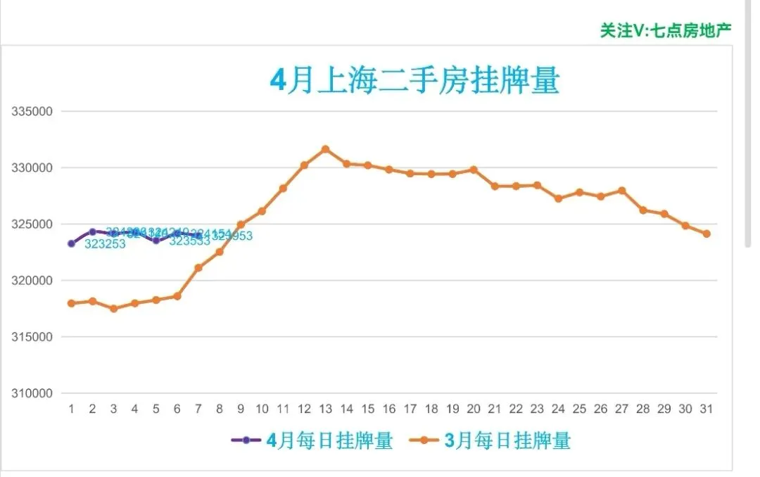 🏠昨日(4月7日,周二)挂牌323953笔,较前一日减少201笔,日均挂牌323938笔,约32.39万笔,挂牌与实际成交比509:1,去化周期约17个月。