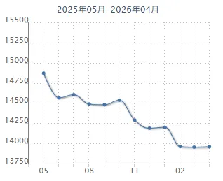 常黄路4月第1周二手房参考均价13868元/平,环比上周下降0.50%。