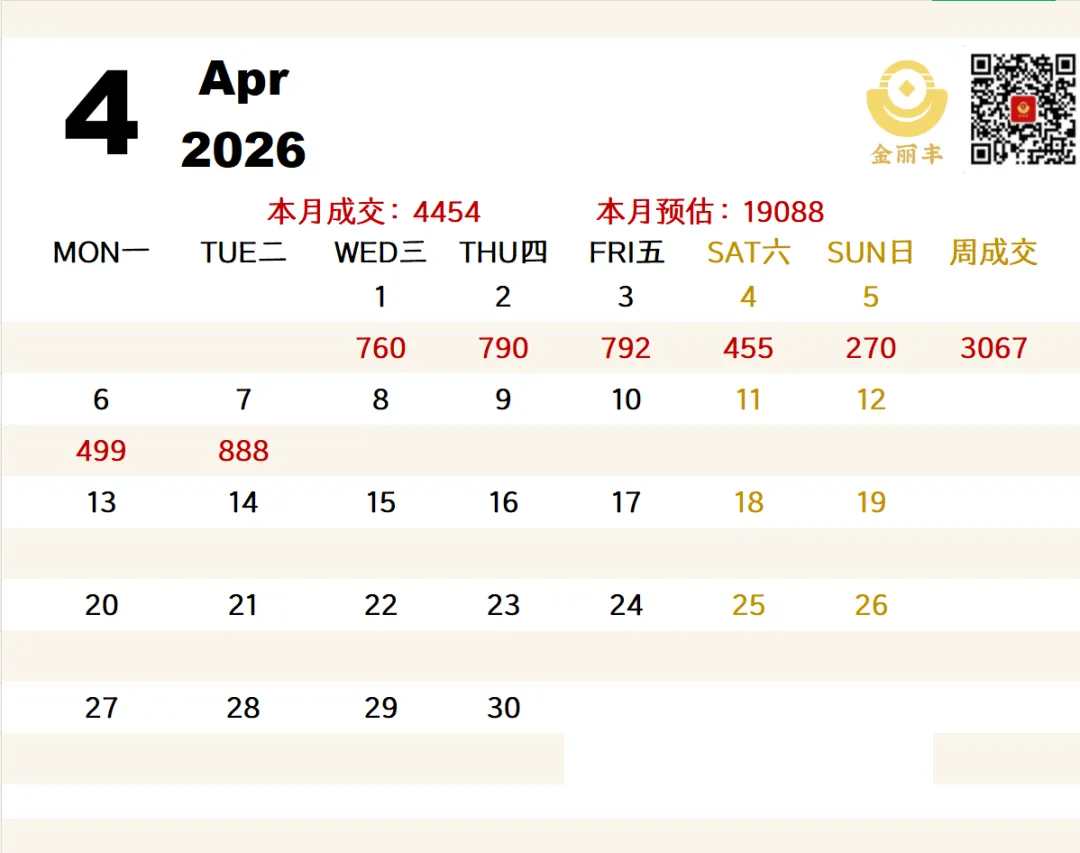 4月份上海二手房成交日历