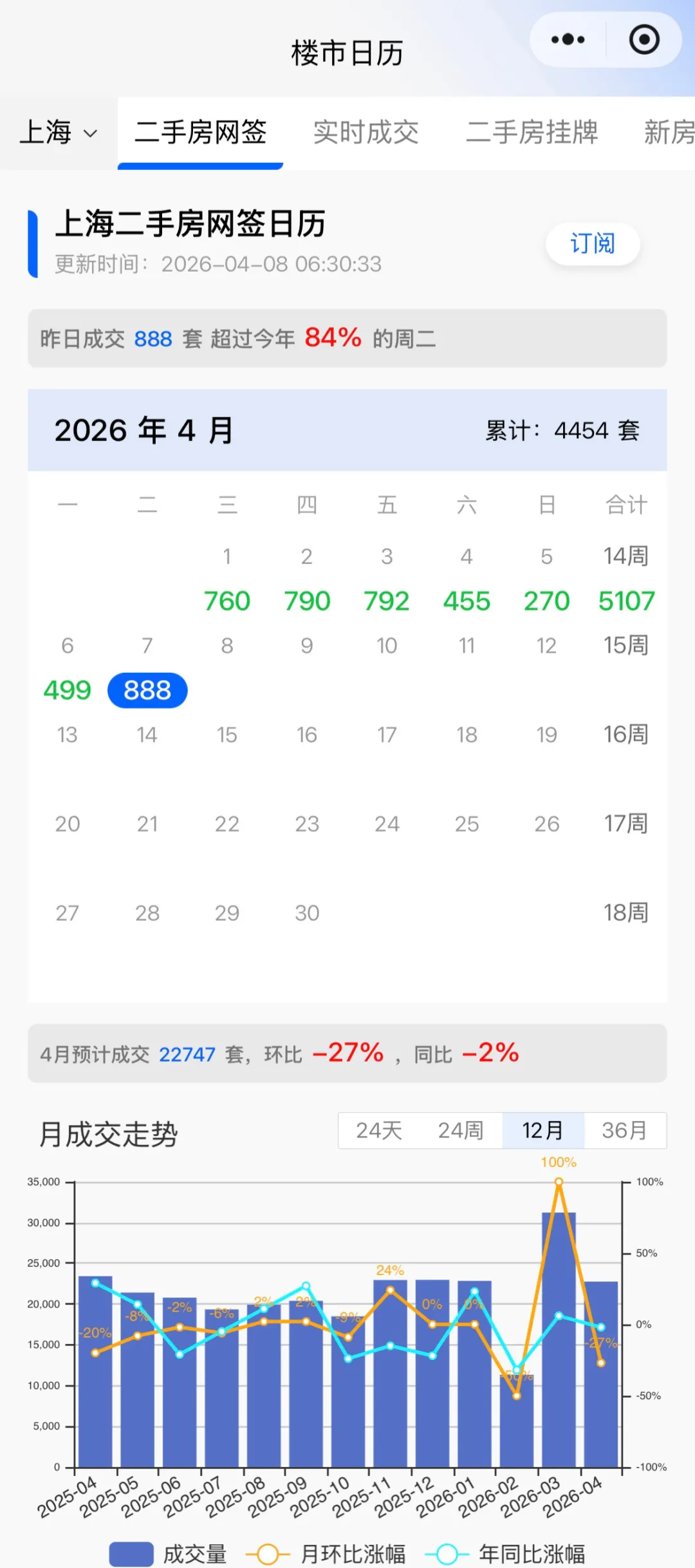 888套!上海二手房周二的网签数据确实给4月开了个好头,超过了今年84%的周二表现。