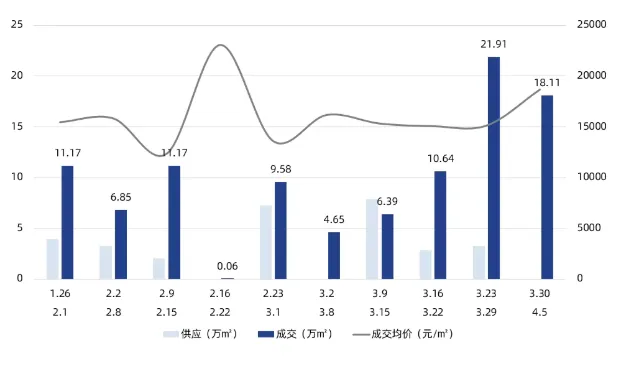 上周青岛新建商品住宅无供应,上周成交面积18.11万㎡、环比下滑17.34%,由于主城区改善型项目为签约主力,成交均价18683元/㎡、环比上涨23.37%。