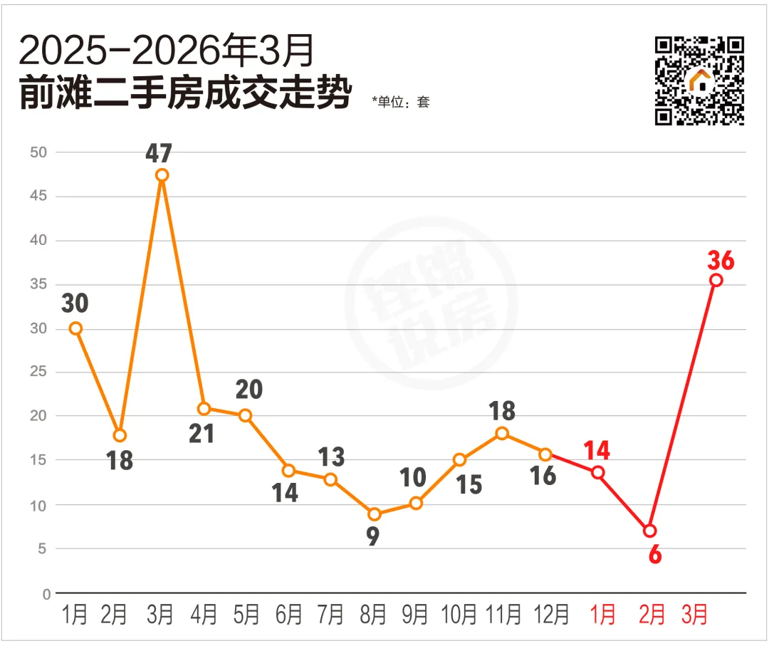 据不完全统计,前滩3月份一共卖了36套二手房,是近年2年来的第四高!
