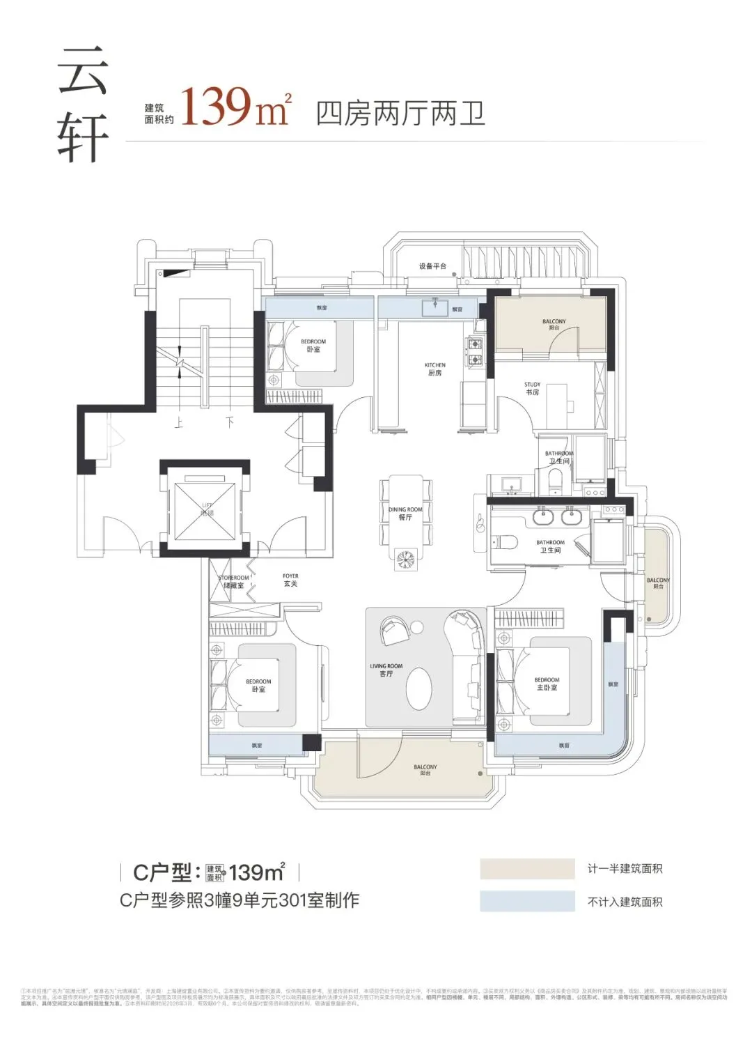 户型设计上,139㎡四房采用类一梯一户入户与四叶草布局,109㎡三房选用飞机户型,均实现过道面积零浪费,搭配南北双阳台、多飘窗与 3.15 米层高,兼顾空间成长性与居住舒适度。