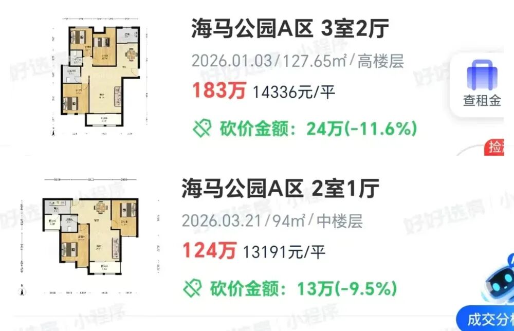 拿在二手房价格验证最充分的海马公园A区作为例子。