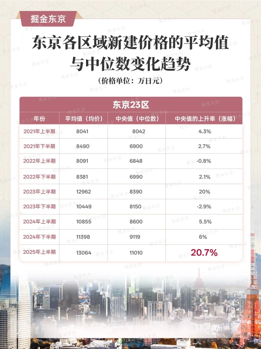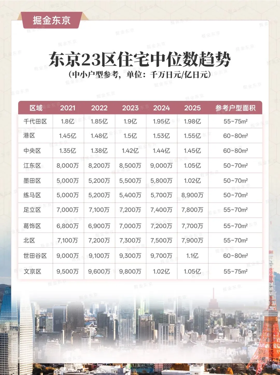 日本不动产经济研究所的松田忠司指出:“中位数破亿,是因为不仅东京市中心,城东、城北等周边区域也在涨。”