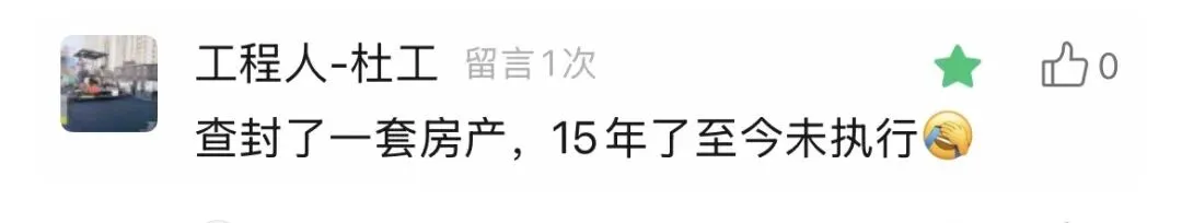 有粉丝宝宝留言说“查封了一套房产,15年了至今未执行”
