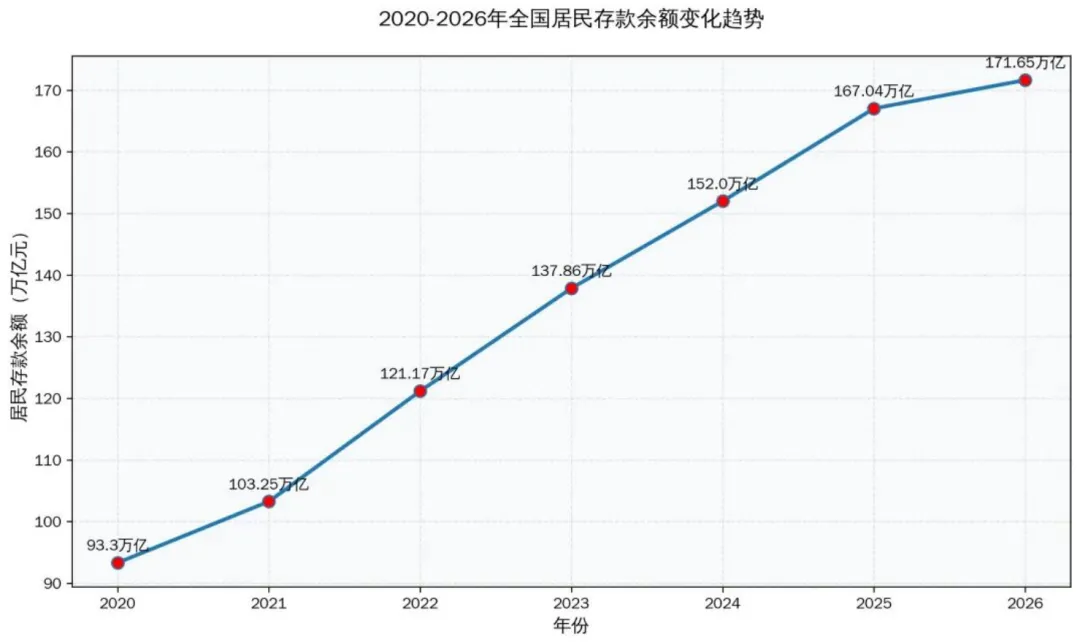 央行数据显示,截至2025年末,住户存款总额已攀升至167万亿元,较几年前翻了两倍多。