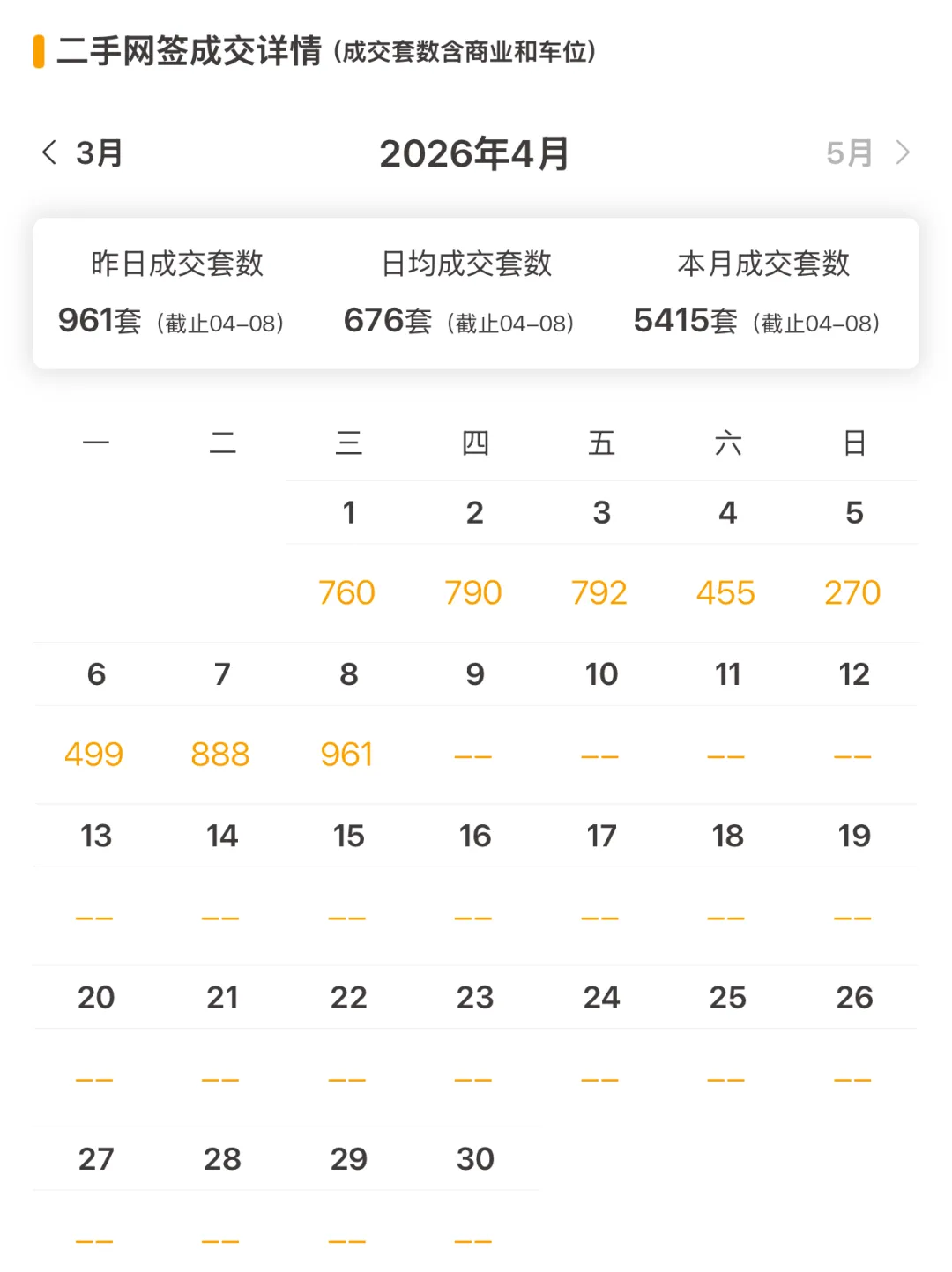 上海二手房最新成交量:昨日(4月8日)网签961套(含住宅、商业、车位等)。