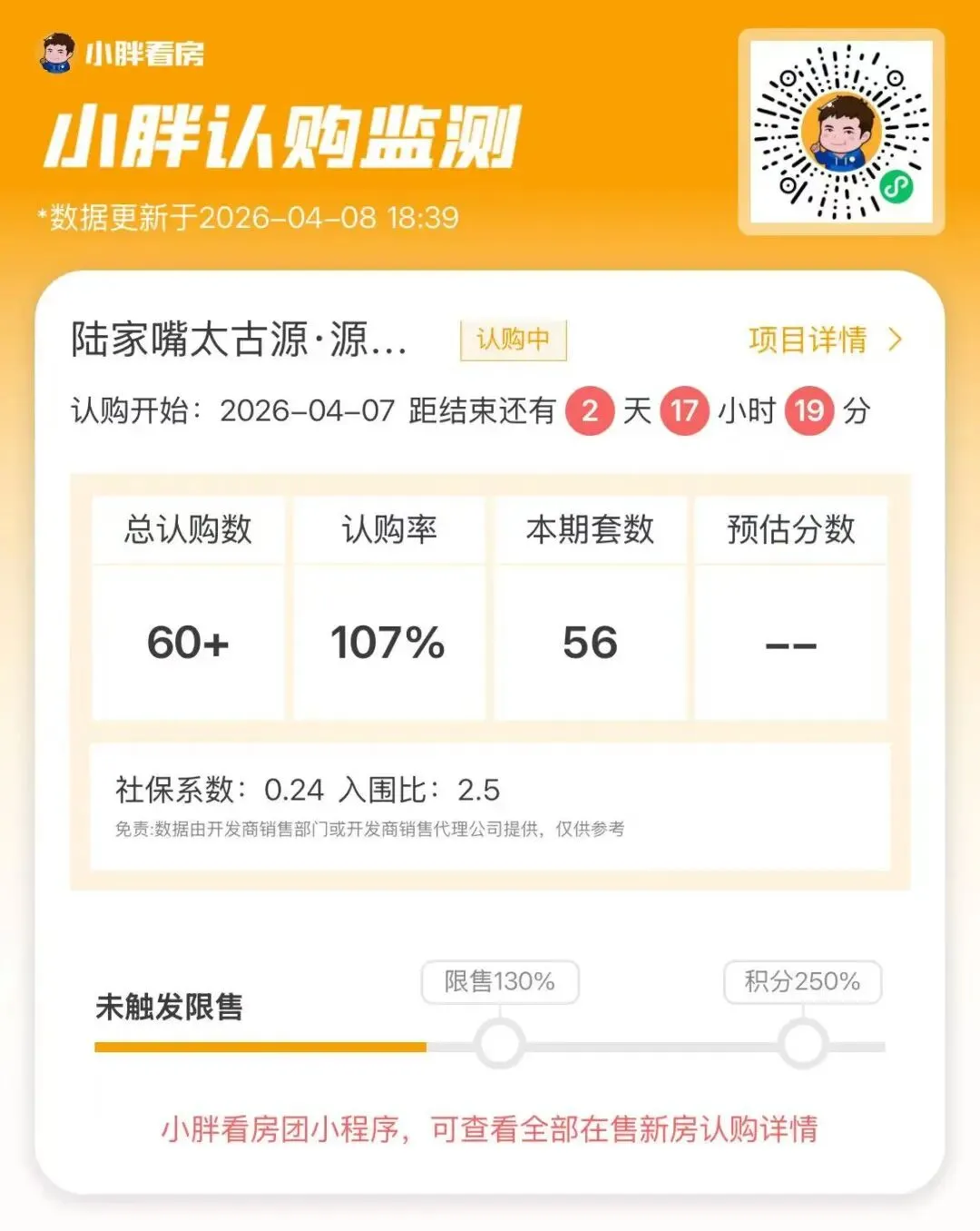 陆家嘴太古源 源邸,4月7日开启认购,至4月11日;