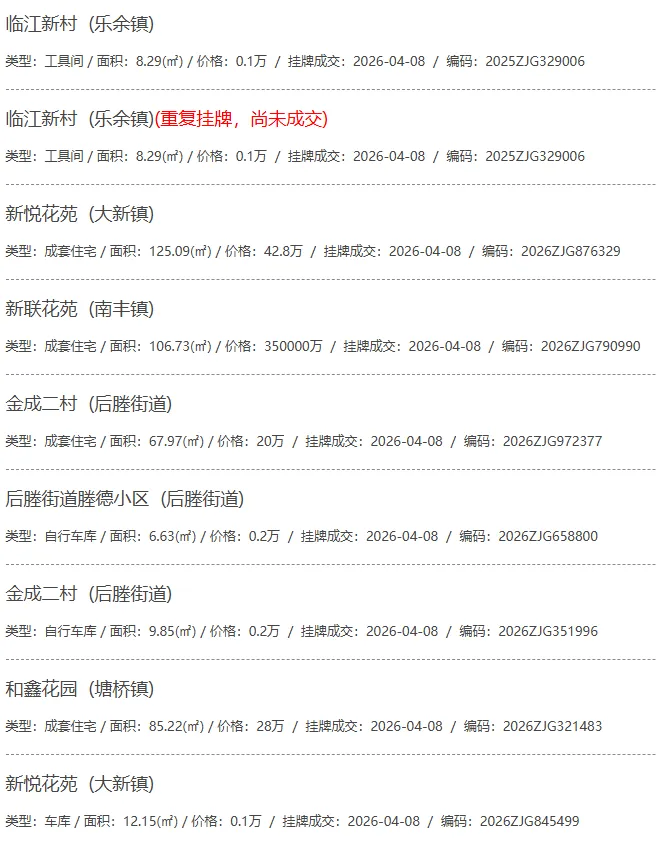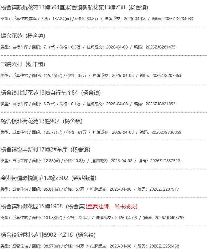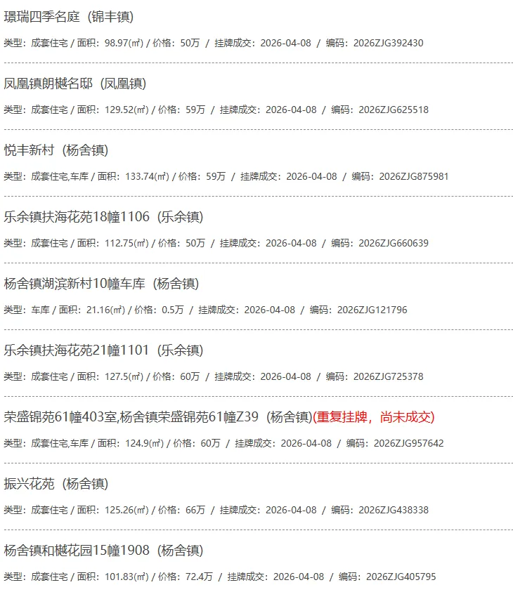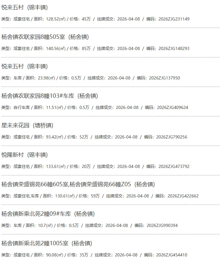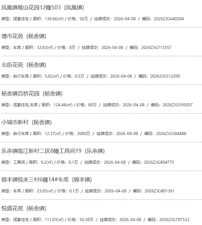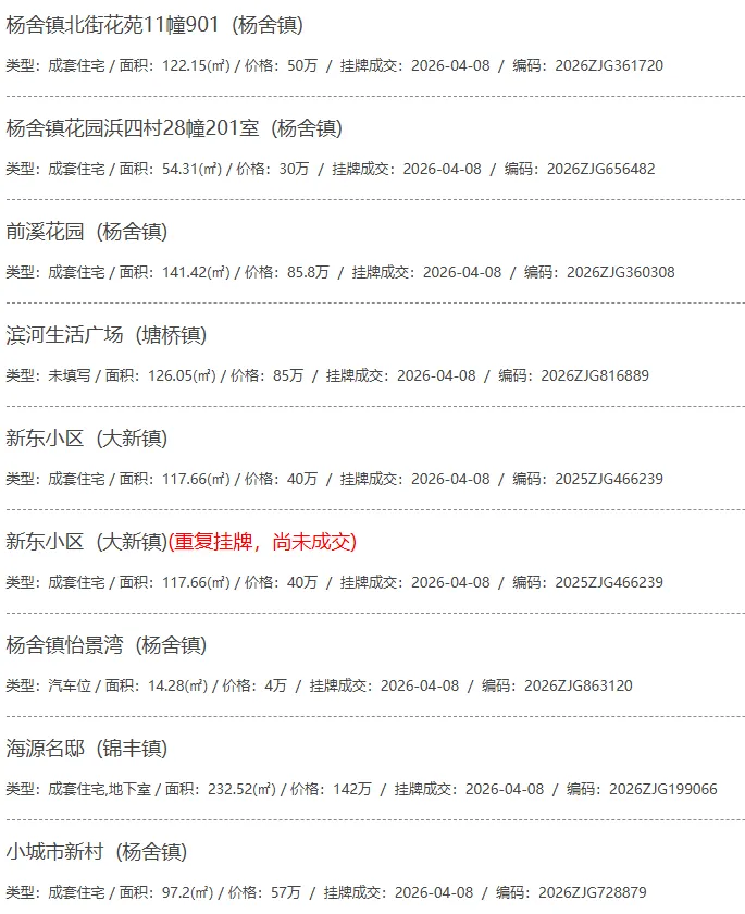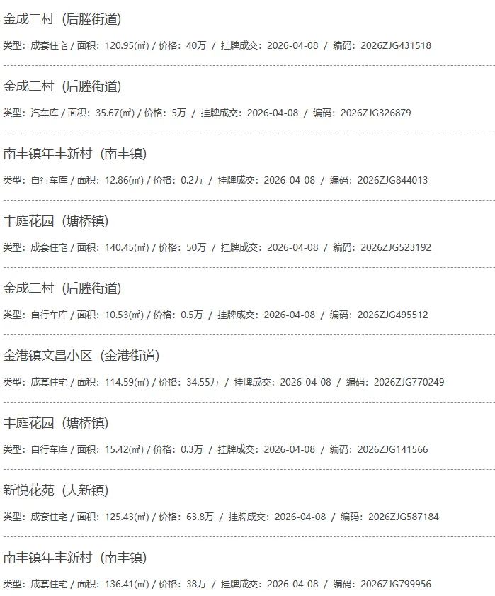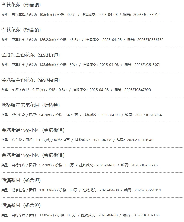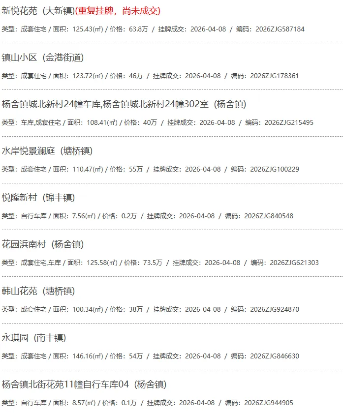 根据张家港房产网(www.zjgzf.cn)整理,(2026-04-08至2026-04-08)总共91套二手房网签挂牌成交(含自行车库及汽车库),数据根据住建局官方网签平台整理,并已同步至各对应小区的成交明细,特别提醒:此处数据及各小区成交数据中凡标注(来自网签挂牌)的,均是根据政府网签挂牌系统整理,价格可能不准,请谨慎采信;并仅作为您买房卖房的参考而非决定依据。以下为数据明细:
