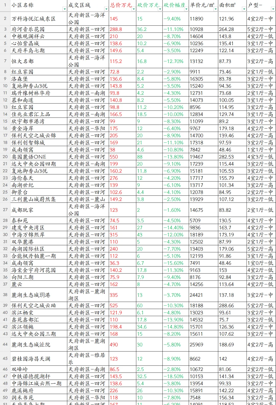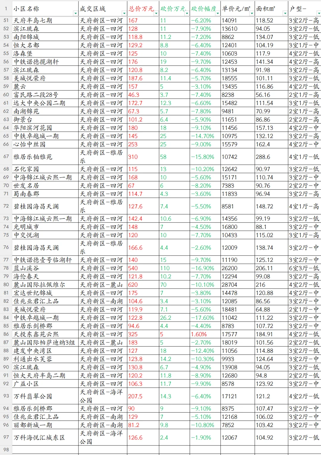>成都天府新区96套最新二手房成交数据,仅一套涨价[20260409期]