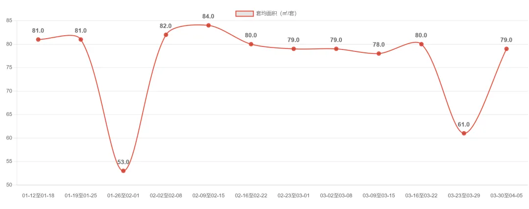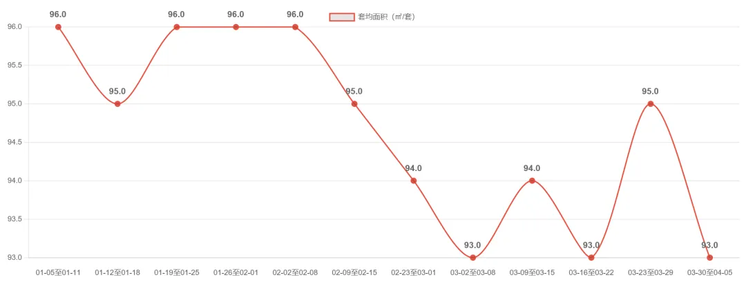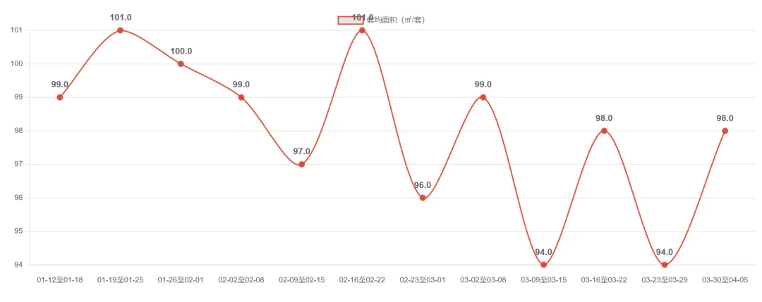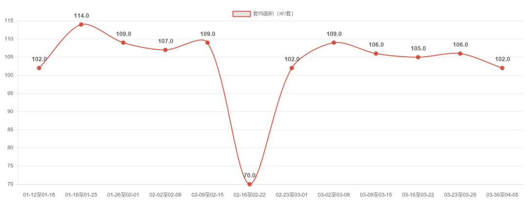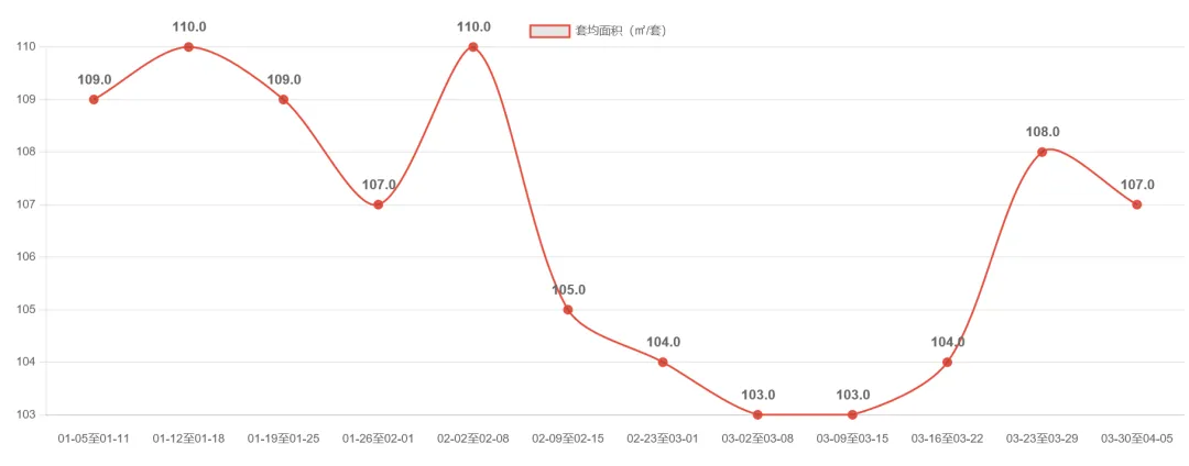 宁波二手房市场近期呈现高位回调态势。2026-03-30至04-05周成交3520套,环比下降4.3%,延续前两周回落趋势,但较2月仍保持50%以上增幅。值得注意的是,套均面积连续三周维持在107㎡以上,较前期103-104㎡明显提升,显示改善型需求占比增加。市场在经历2月底以来的快速放量后进入调整期,但成交规模仍处近6周次高位,整体维持较高活跃度。后续需关注成交量能否企稳及套均面积变化趋势。