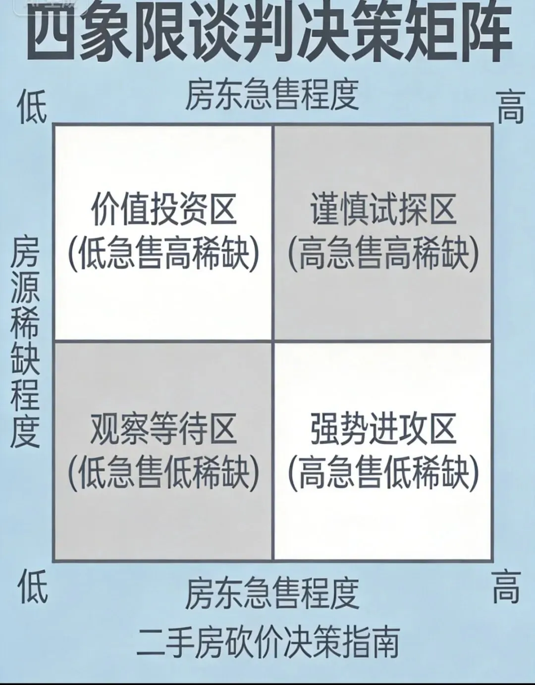 不同的房源,不同的房东,要用不同的谈判策略。我设计了这个矩阵,帮你快速决策: