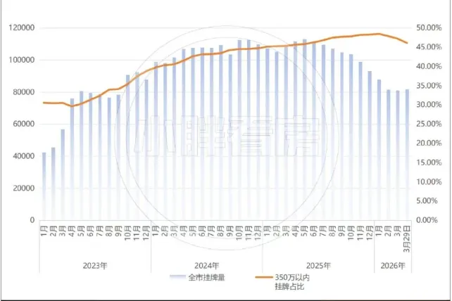 如果你的预算在350万以内,并且已经遇到地段、户型、配套都符合要求的二手房,现在完全可以放心上车,不必再担心继续深跌;而还没挑到心仪房源的购房者也不用焦虑,市场并不会出现快速反转式跳涨,未来几个月甚至更长时间,整体仍会保持相对稳定的节奏,大家完全可以从容挑选、理性入手!挂牌市场数据
