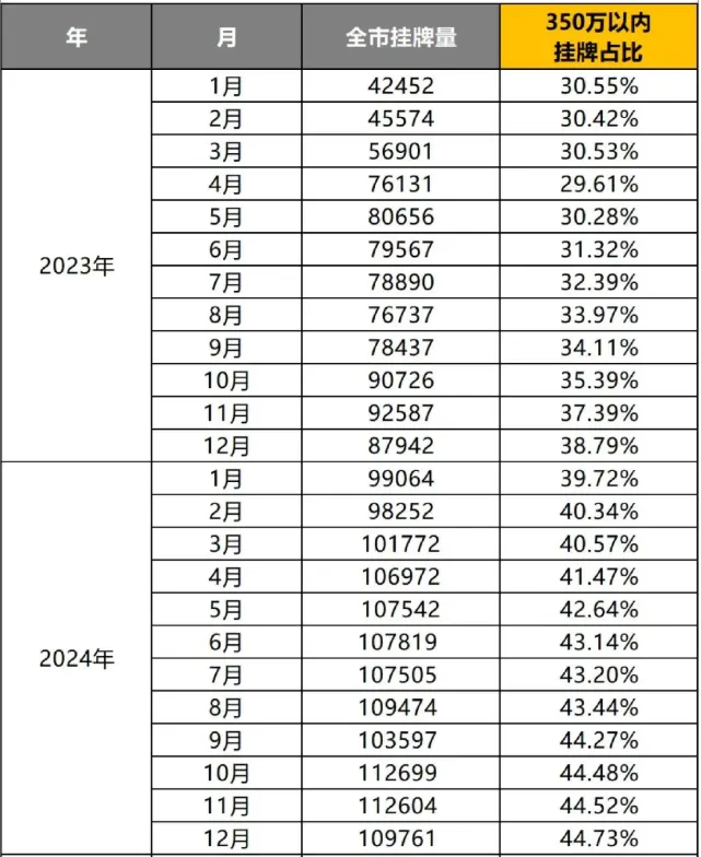 低总价段(350万以内) 带看持续活跃